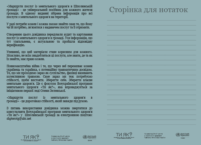 «Маршрути послуг з ментального здоров’я у Шполянській громаді» — це своєрідний дороговказ до стійкості, який завжди поруч.